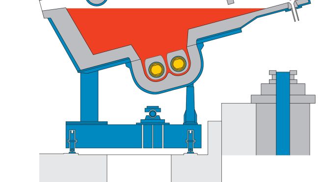 The forehearth enables slag-free, multi-strand casting. The furnace can be hydraulically tilted and moved away from the casting position. This facilitates and accelerates production, CC mould changing and furnace emptying.
